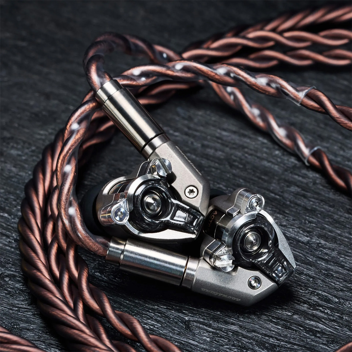 Myrinx 複合動圈單元迎來第二代進化。全新開發的換能器結合醫療級高分子生物材質「Myrinx 振膜」與日本製造超薄鍍鈹圓頂 "Beryllium-coated dome",經精密工程塗層工藝打造,實現全頻段逼真自然的音質,連人聲最細微的氣息與顫音、一呼一吸,皆清晰可辨。