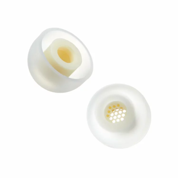 耳機出音嘴的位置使用了較為厚身的物料,令隔音效果更出色。接觸內耳的部份使用較薄身的物料,因此減少壓力,令配戴感更舒適。濾網以六角形結構設計,減少開孔位置之間及跟網面外圍產生的空間,令聲音傳送更開放,減少失真,聲音密度更高,聲音定位更準確更實淨。