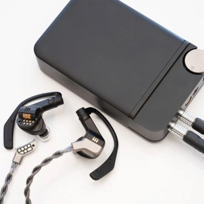 耳機部分採用 PVD 黑色塗裝純鈦外殼,配合耳掛結構提升配戴穩定性,五路八單元當中包括 MEMS 超高頻、2 x BA 高頻、2 x BA 中音、1 x BA 中低音、2 x 8mm 動圈低頻而成,支援超過 100 kHz 的寬頻率響應。透過原廠 7 針連接器,以基於 SHIROGANE 系列技術開發的專屬純銀 16 絞 Ultimate 級純銀導體線材,將功放訊號無損地傳輸到每個單元。