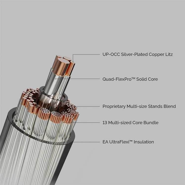 此為第三代實心核心系統,由 2024 年的 Trio-Flex™ 架構演變而來。中央導體現在由四個獨立校準的實心導體組成,每個核心都為其頻率角色進行了精確調