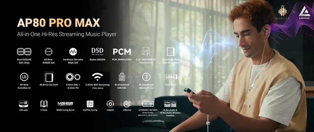 AP80 Pro MAX 由新的 X1600E SoC 提供動力,提供更快的操作、更流暢的導航和改進的藍芽穩定性。精緻的 UI 設計提供了更直觀、更流暢的體驗,為 HiFi 愛好者和日常聽眾提供更輕鬆的瀏覽、播放和自定義調音調整。
