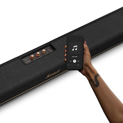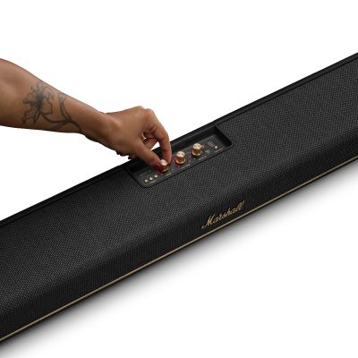 旗艦款 Heston 120以其杜比全景聲(Dolby Atmos)與DTS:X技術,讓聲音在三維空間自由移動,實現宛如劇院級的立體環繞音場。其內建的十一組驅動單元,能細緻分工還原各頻段聲音,無論是電影中的每一聲爆炸、遊戲裡的細微腳步,都彷彿在身旁真實發生,音效精準且充滿張力。其承襲 Marshall 經典的金屬旋鈕與皮革包邊設計,讓這份專業性能,完美融入時尚居家風格。