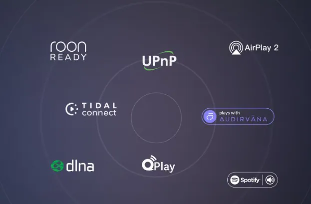 支持 Roon Ready、Audirvana、TIDAL Connect、Spotify Conncet、AirPlay2、QPlay、UPnP/DLNA 等多種局域網高清音訊廣播協定。