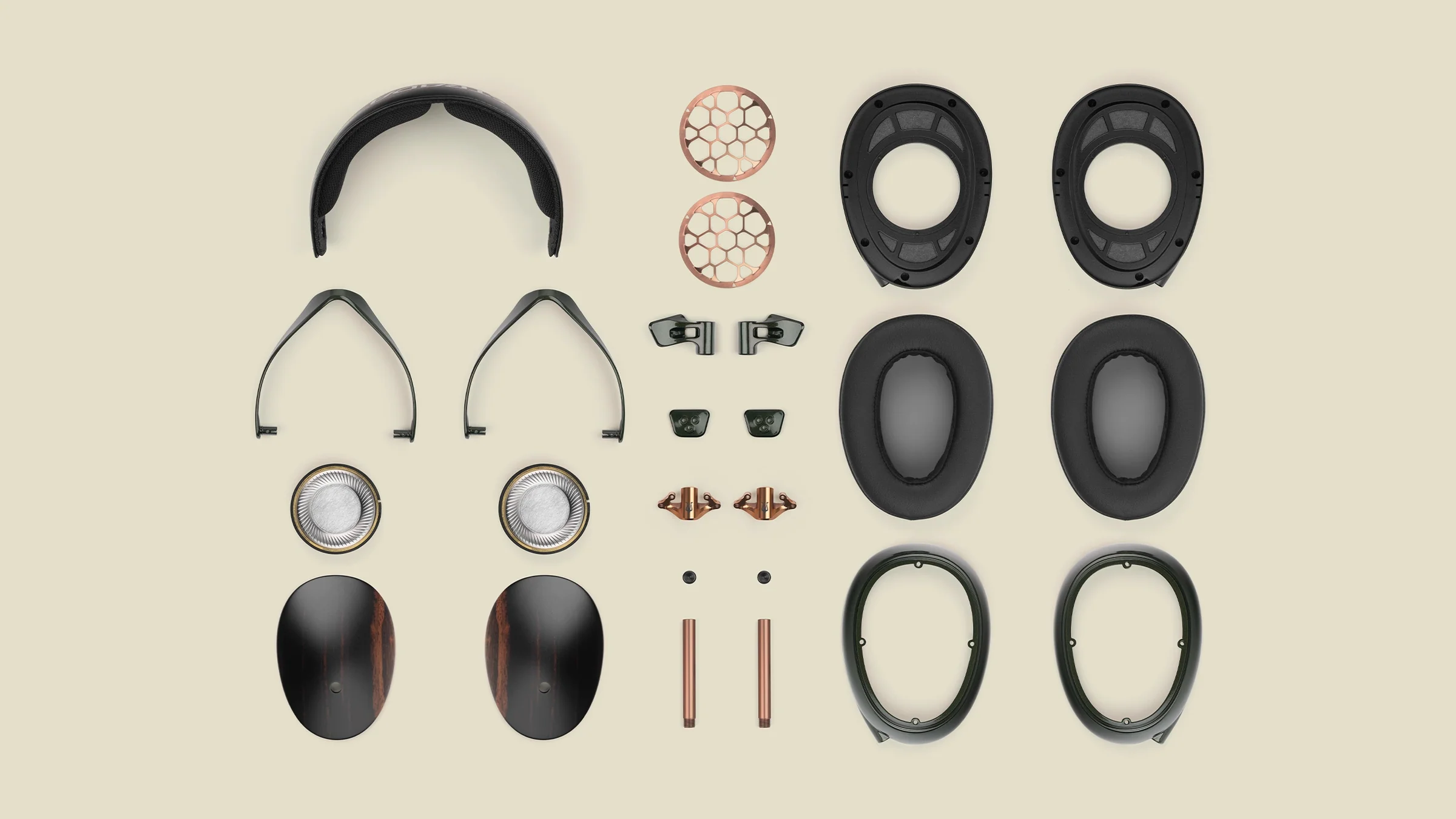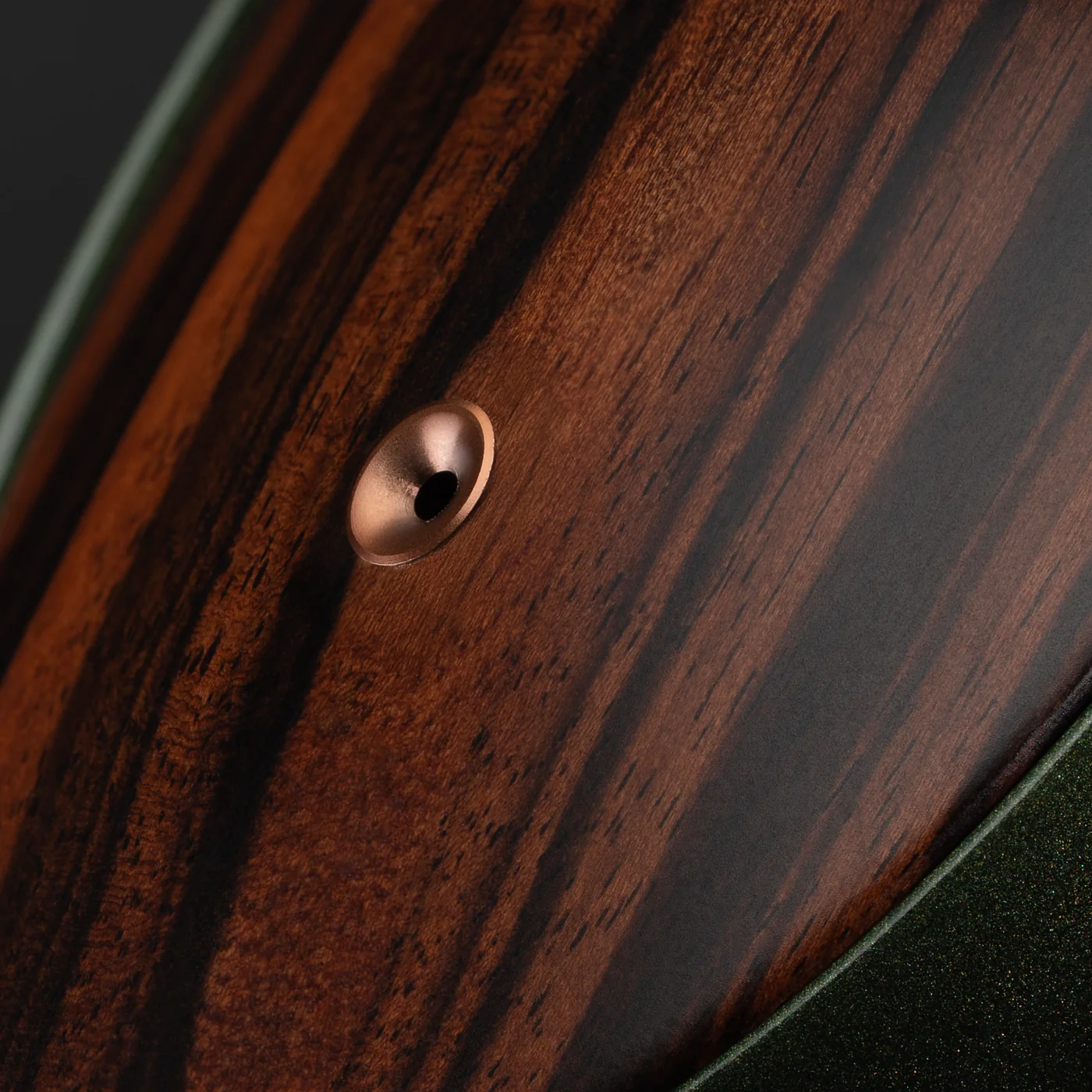 耳罩採用馬卡薩黑檀木——一種質地厚重、密度高、外觀精美的硬木,以其深沉濃鬱的棕色和精緻的金棕色條紋而聞名。
