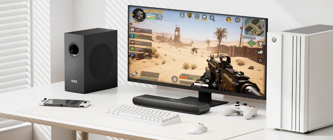 OXS S21 主音箱設計極為纖薄,厚度僅 42mm,長度 400mm,無論是小單位的客廳電視櫃,還是個人房間的電腦桌,都能輕鬆安置而不佔用過多空間。緊湊的設計讓它能夠完美融入各種居住環境,特別適合香港的小型住宅單位。同時配備掛牆套件,提供靈活的安裝選擇,滿足不同用家的空間需求。