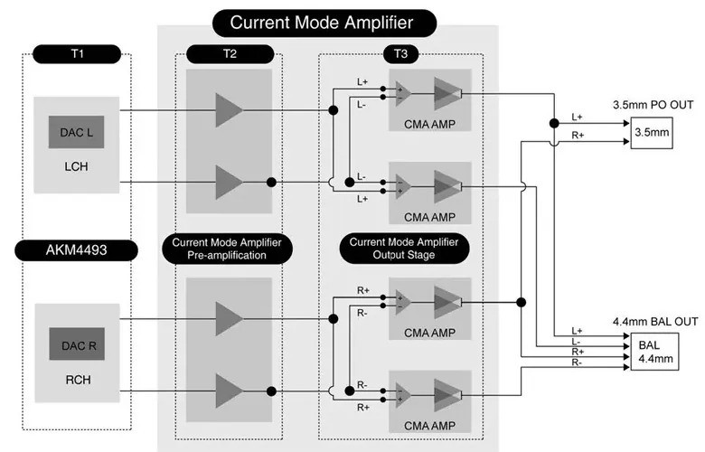 SIGMA 搭載四組專利級全分立全平衡設計電流模耳機/輸出級放大器。對於便攜設備來說,在電池供電和便攜等級尺寸中,解決體積、功耗和音訊性能之間的矛盾是首要大事。「電流模」專利放大器在便攜尺寸中,兼顧強勁的驅動力和細膩的音色。全分立電流模放大器峰值功率高達 5W,峰值電流高達3A,實現強大驅動爆發力。
