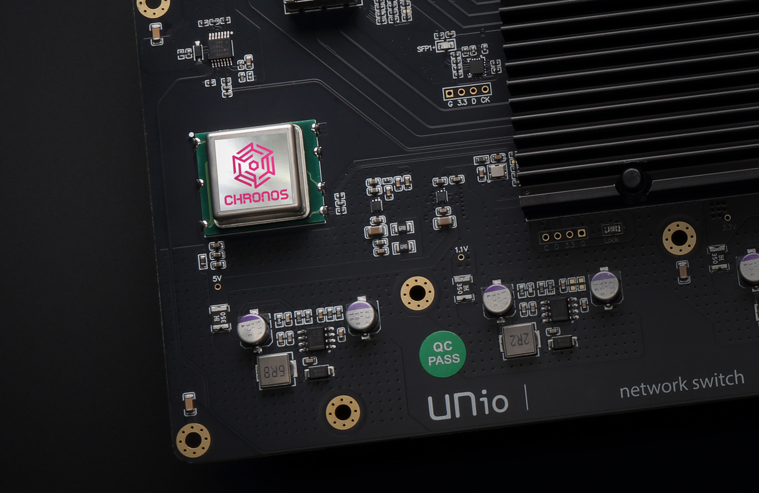 內置時鐘採用了UNio獨有的CHRONOS Class 特選超低相位雜訊時鐘,大幅減低時鐘的不穩定性。UNio團隊在每次3小時的恆溫器材測試下, 在平均每20顆高階石英時鐘中才能揀選出來的一顆超低相位雜訊 (Phase Noise ) 的CHRONOS Class 極準時鐘作為核心,無論任何速度傳輸亦可以確保數據的精準和安靜